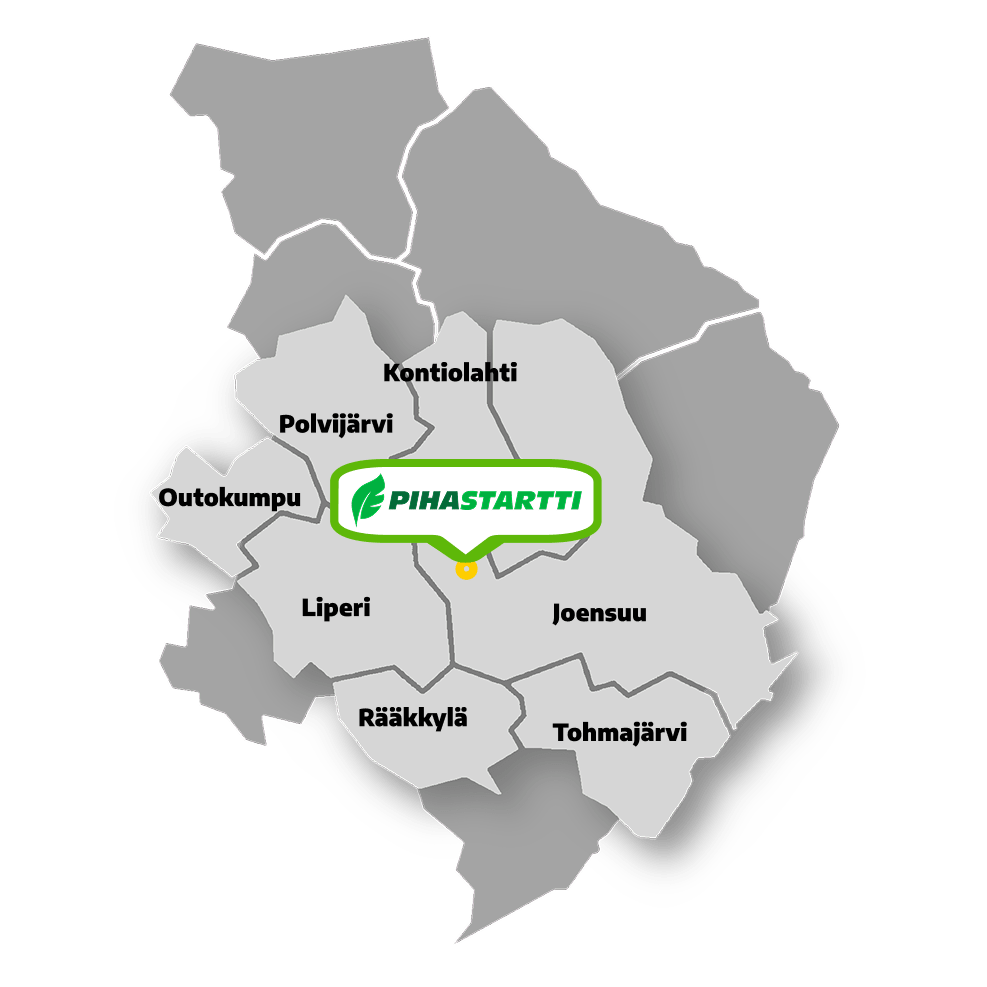 PihaStartti liikkuu sujuvasti siellä missä pihat kaipaavat huolenpitoa. Palvelumme kattavat Joensuun, Hammaslahden, Kontiolahden ja Liperin, sekä Rääkkylän ja Tohmajärven seudut. Tarvittaessa tosin ajamme myös pidemmälle.